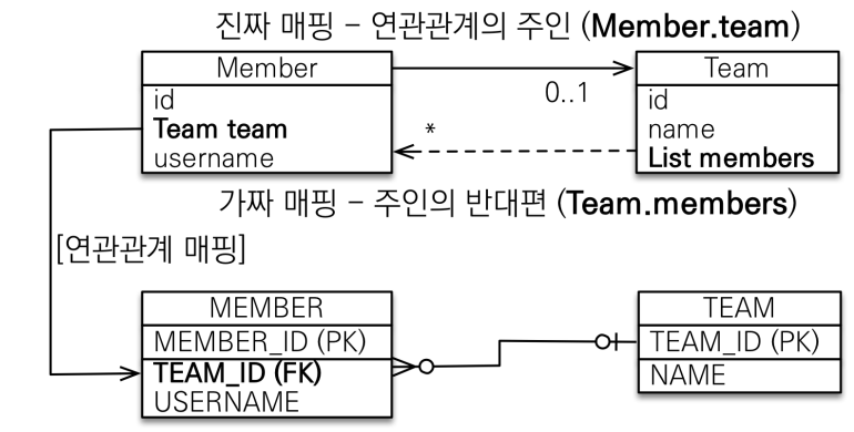 DB입장에서 Member도 Team을 가지고, Team도 Member를 가지면 이제 둘 중에 뭘로 연관관계를 매핑해야 하는지 선택해 주어야 한다.