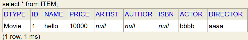 칼럼 DTYPE을 통해 어떤 데이터인지 구분한다.