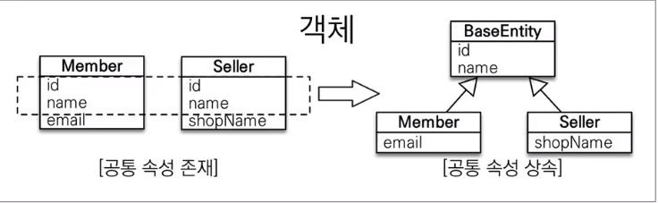 객체의 입장에서 id, name의 필드가 계속 나올 때 BaseEntity에 속성만 두고 상속해서 사용할 때 사용한다