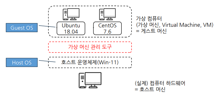 - 대표적인 가상 머신 모니터로 VirtualBox, VMWare가 있다.