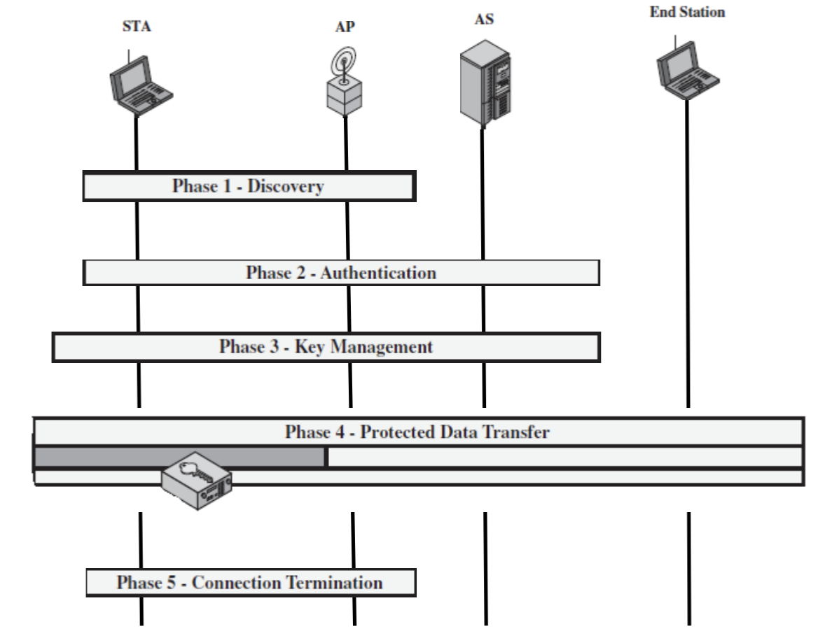 STA부터 End Station까지 메시지를 보내는 과정으로 STA <-> AP(해당 구간만 암호화) 구간은 교환된 키를 기반으로 암호화