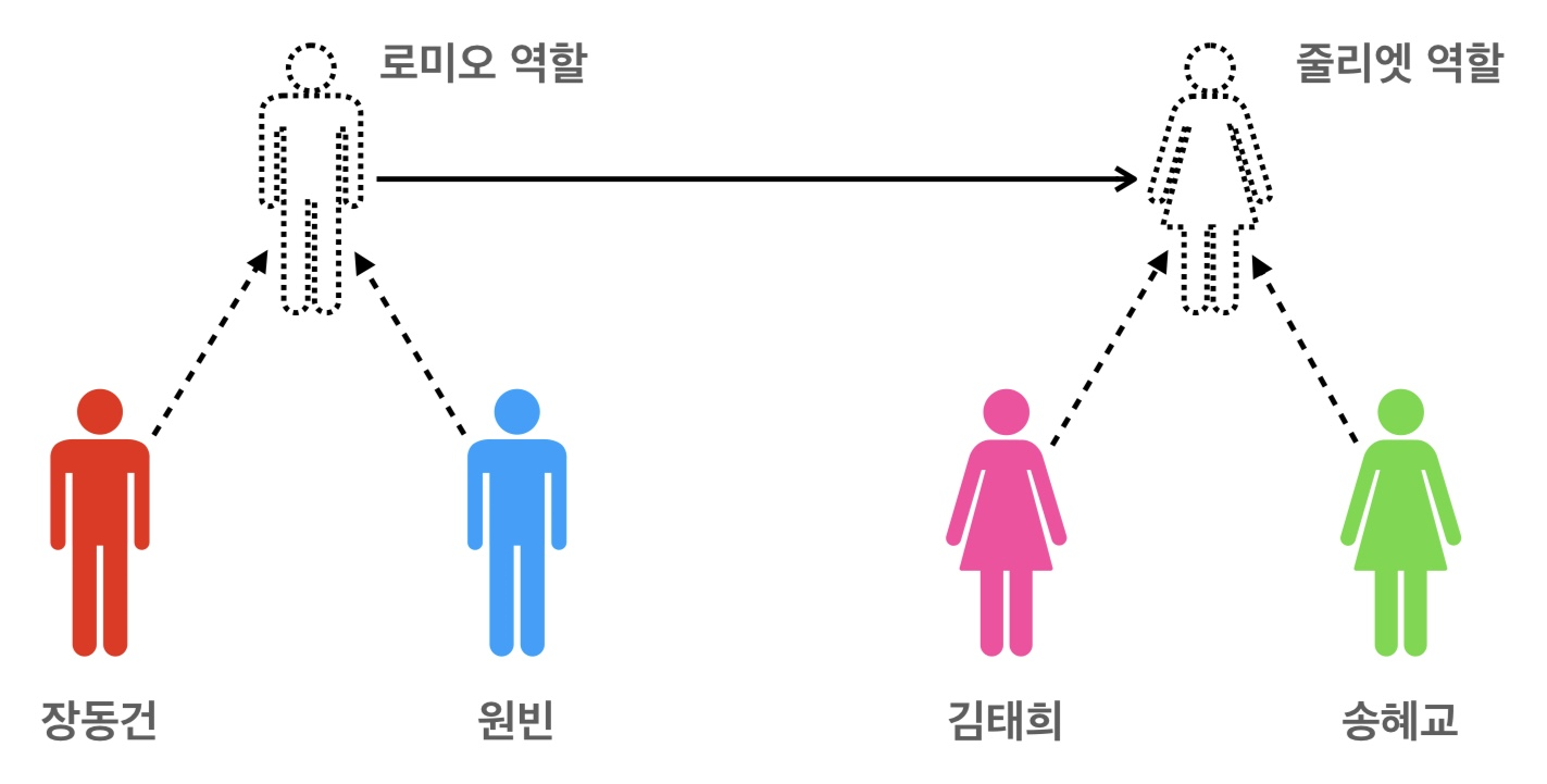 위 그림에서 로미오 역할은 장동건, 원빈 중 누가 하더라도 상관이 없다
