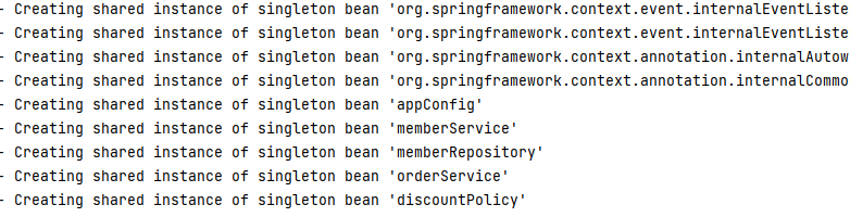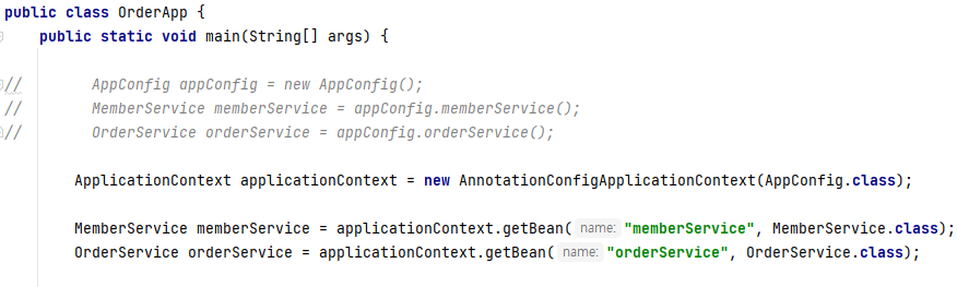 이제 AppConfig를 이용하여 주입했던 부분을 주석 처리하고 스프링을 이용하자